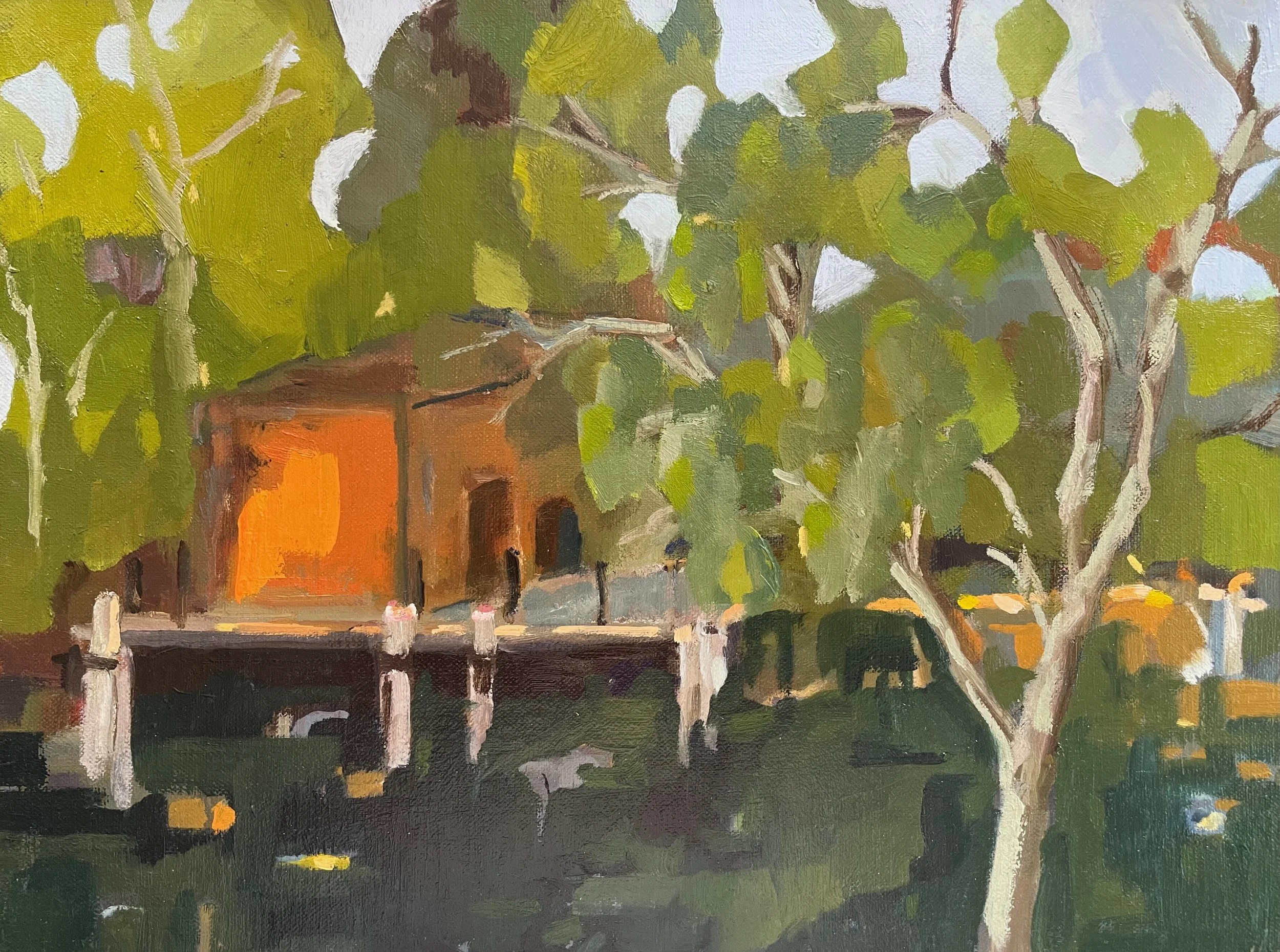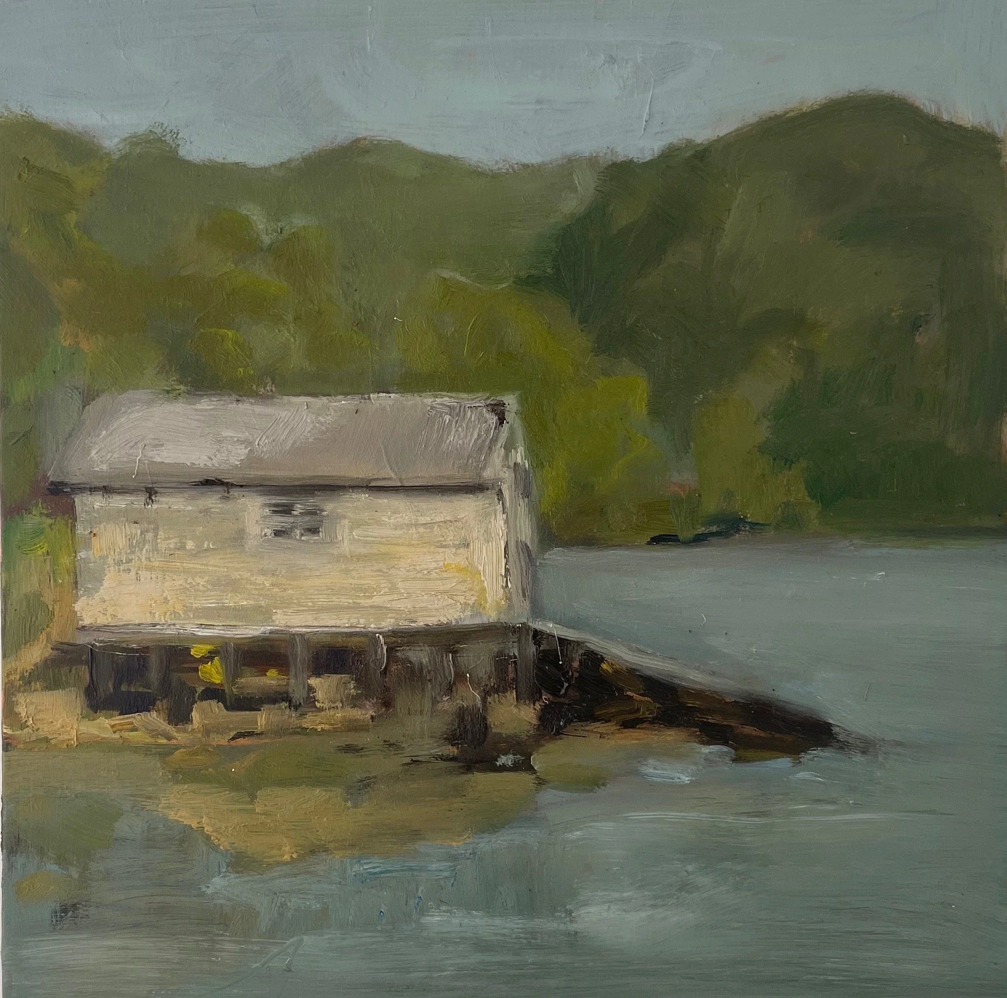 boathouse clareville, oil on board, 20 x 20cm, private collection