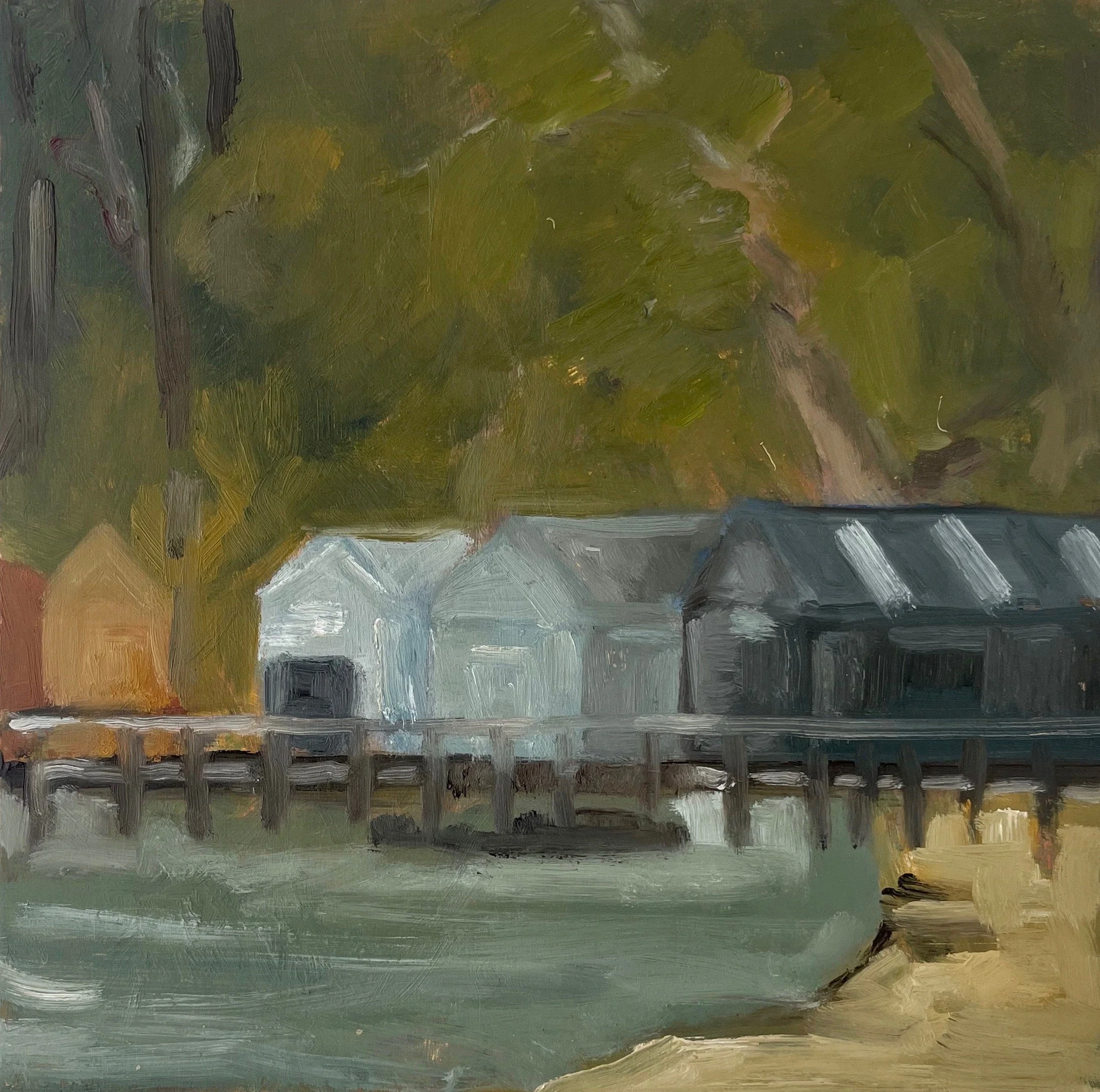 boathouses clareville, oil on board, 20 x 20cm, private collection